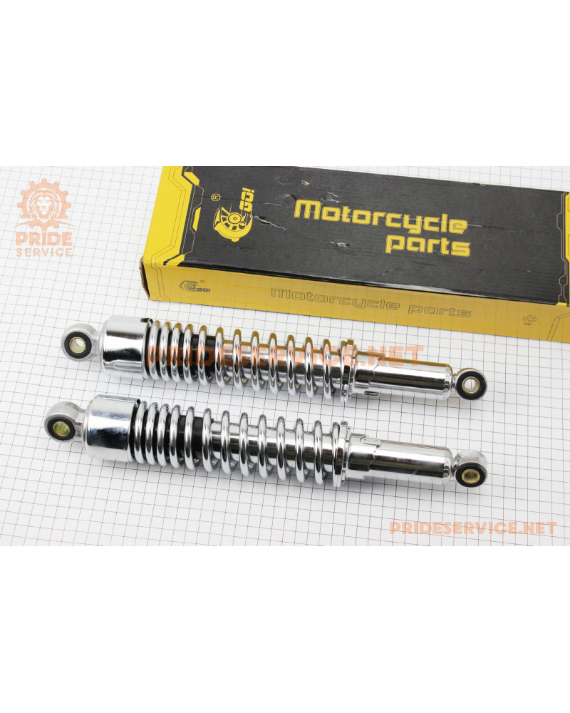 Амортизатор задній JH/CB/CG-335мм*d-55мм (втулка 12мм / втулка 10мм) стакан, регул., хром к-кт 2шт
