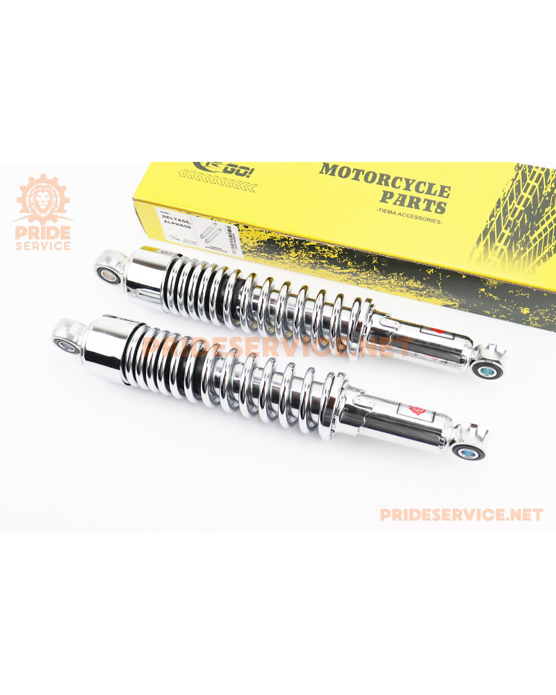 Амортизатор задній JH/CB/CG-340мм*d-55мм (втулка 12мм / втулка 10мм) стакан, регул., хром к-кт 2шт