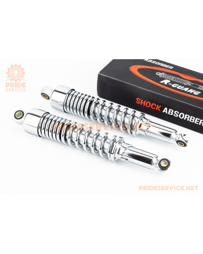 Амортизатор задній JH/CB/CG-345мм*d58мм (втулка 12мм / втулка 10мм) зі склянкою регул., хром к-кт 2шт