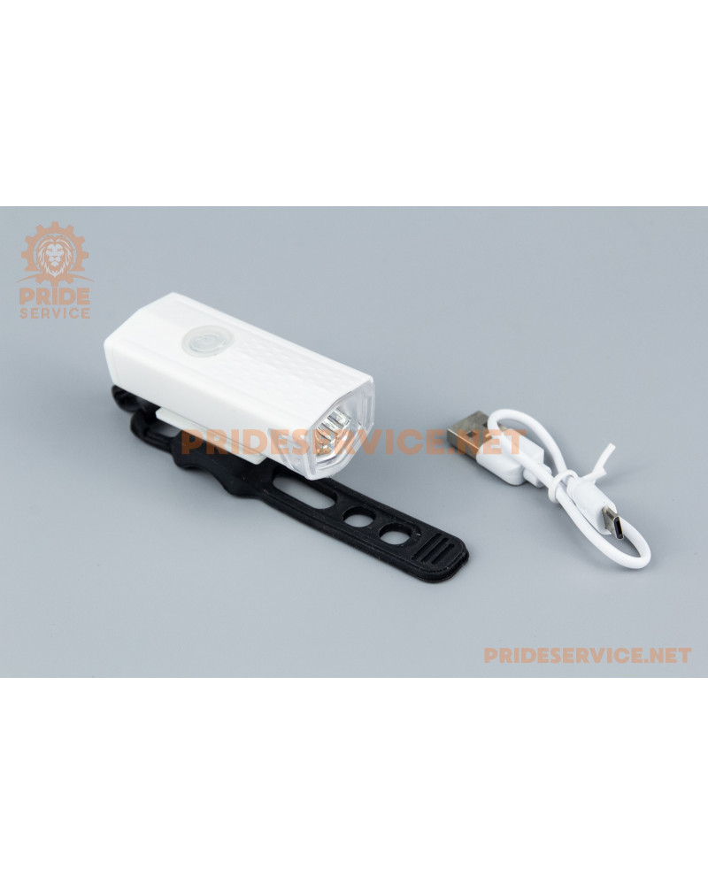 Ліхтар передній 1 діод 300 lumen алюмінієвий, Li-ion 3.7V 800mAh зарядка від USB, вологозахисний, білий