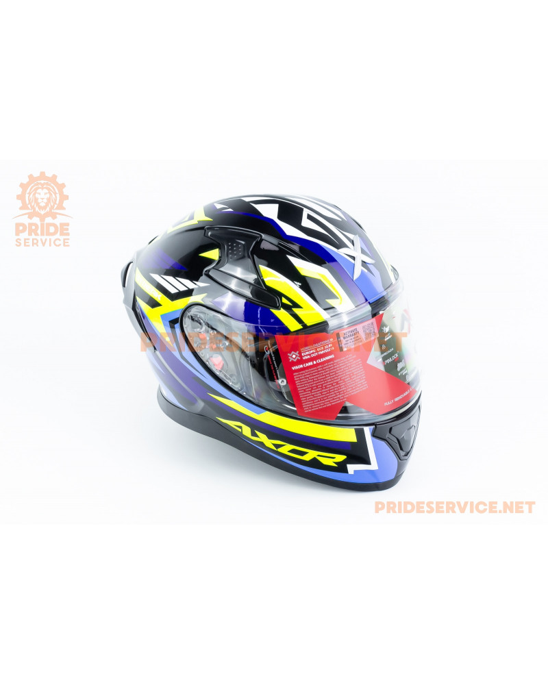 Шолом інтеграл APEX STREAK з пінлоком (стандарт DOT/ECE), висувні сонцезахисні окуляри М (57-58см), чорно-синьо-салатовий