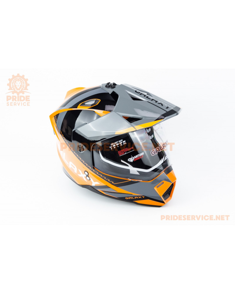 Шолом кросовий з візором (стандарт DOT), висувні окуляри GLX-802 M (57-58см), чорно-помаранчевий