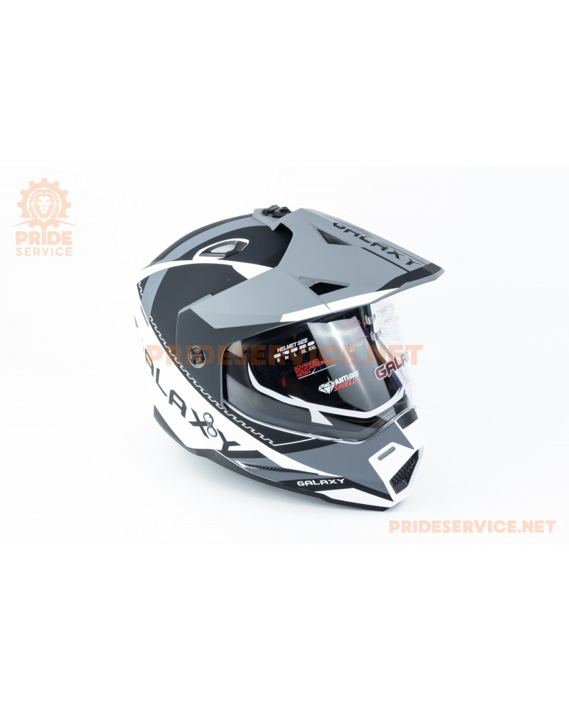 Шолом кросовий з візором (стандарт DOT), висувні окуляри GLX-802 S (55-56см), чорно-білий мат
