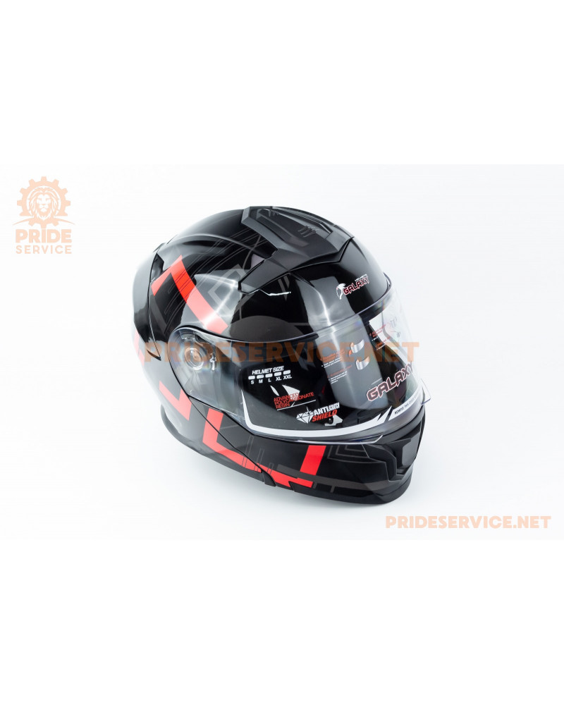 Шолом модуляр з відкидним підборіддям (стандарт DOT), висувні окуляри GLX-912 M (57-58см), чорно-червоний