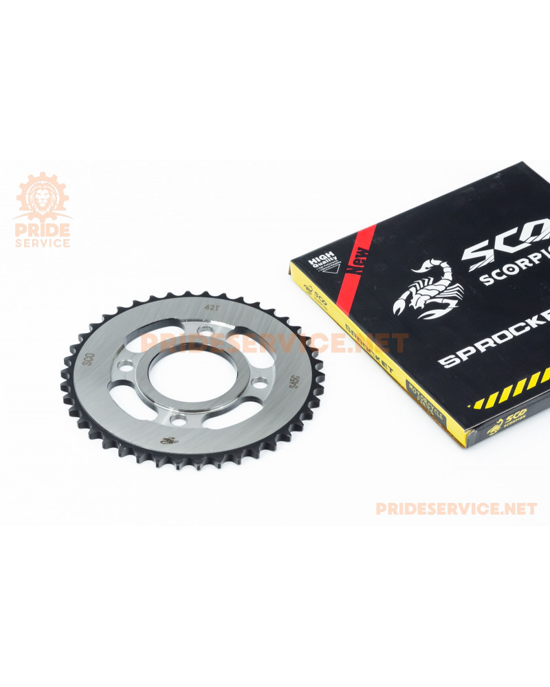 Зірка задня WY125-428-42Т-d-58; 4отв.*90мм "гартована" (ZS125J спиці/BOXER ВМ/ВМX)